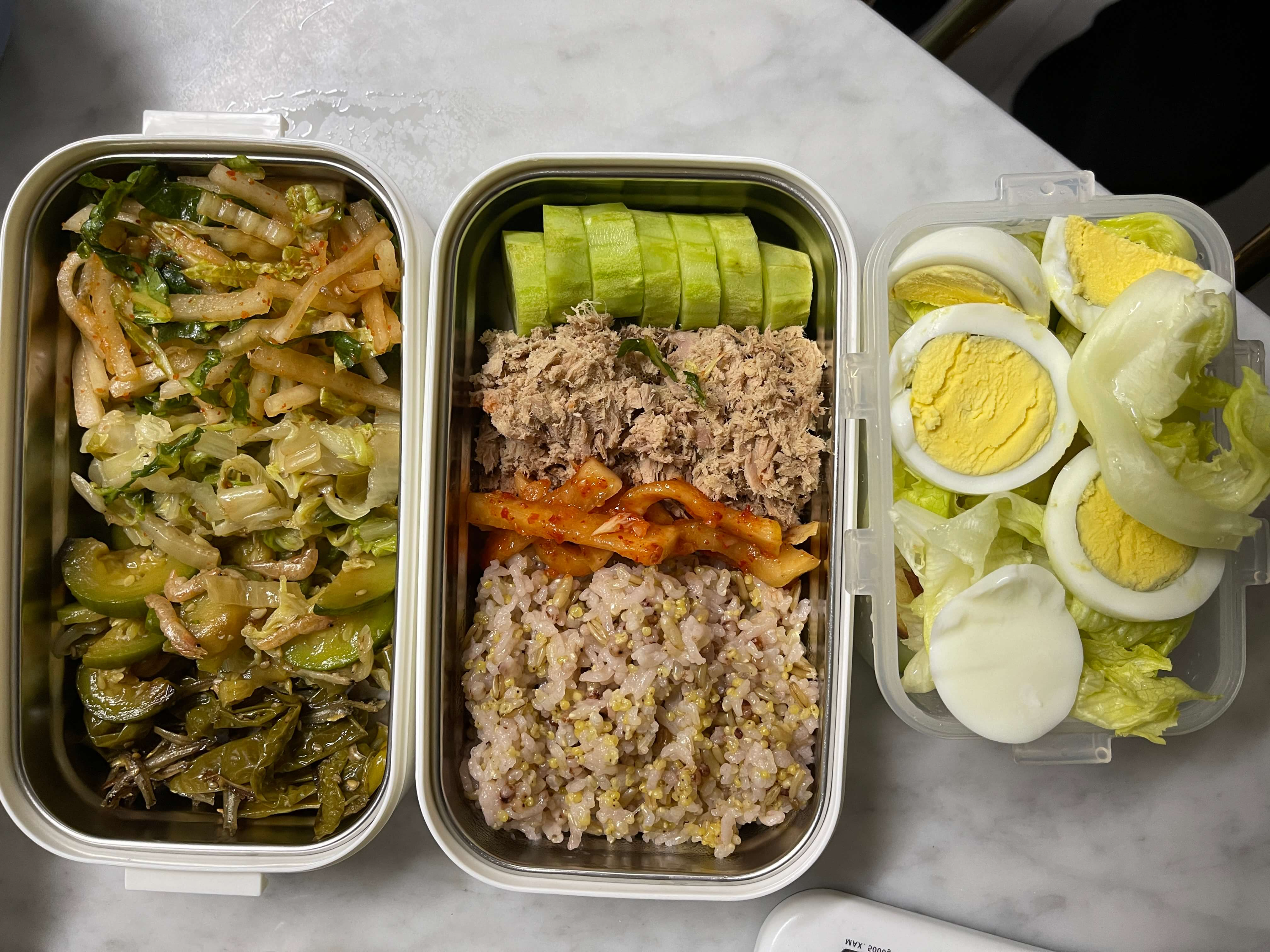 | 단백질: 기름뺀참치 1캔 (80g), 멸치조금, 건새우조금 |